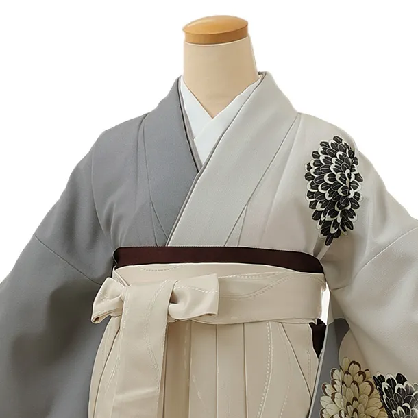 卒業式袴レンタル1361 グレー菊染め分けxアイボリー