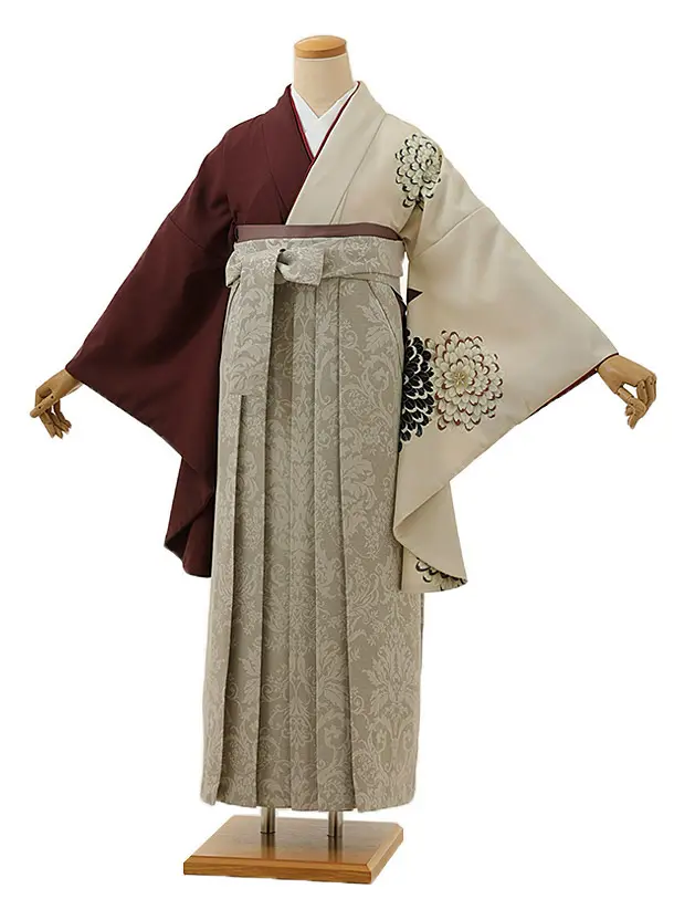 卒業式袴レンタル1362 ボルドー菊染め分けxグレージュ