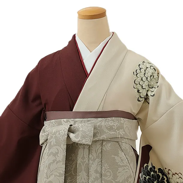 卒業式袴レンタル1363 ボルドー菊染め分けxグレージュ