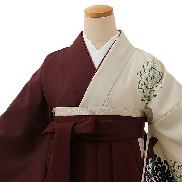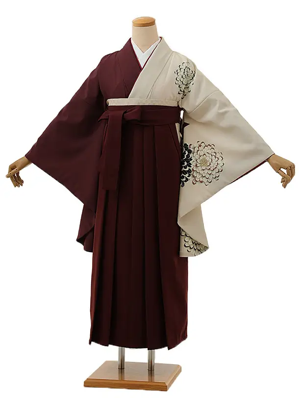 卒業式袴レンタル1364 ボルドー菊染め分けxボルドー