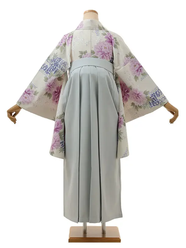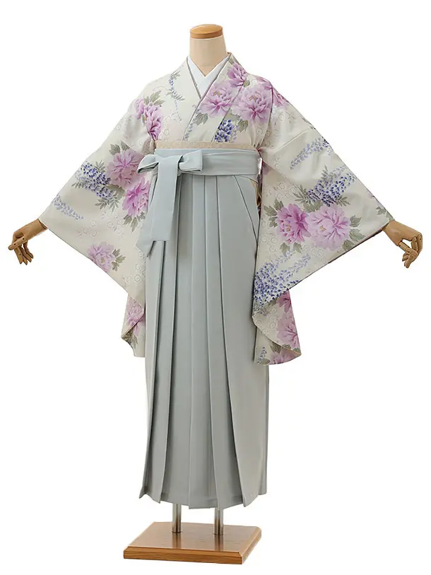 卒業式袴レンタル1365 オフホワイト牡丹藤xグレー