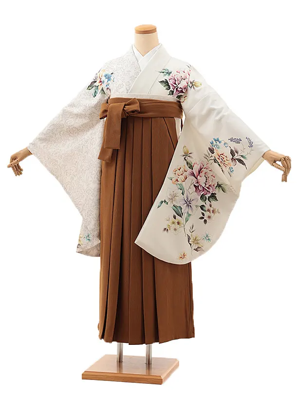卒業式袴レンタル1366 クリーム梅縦取りxブラウン