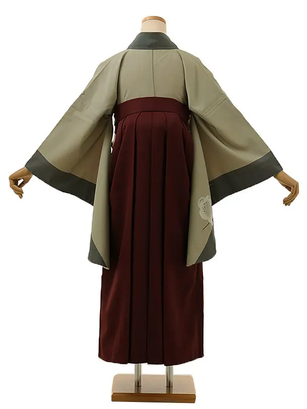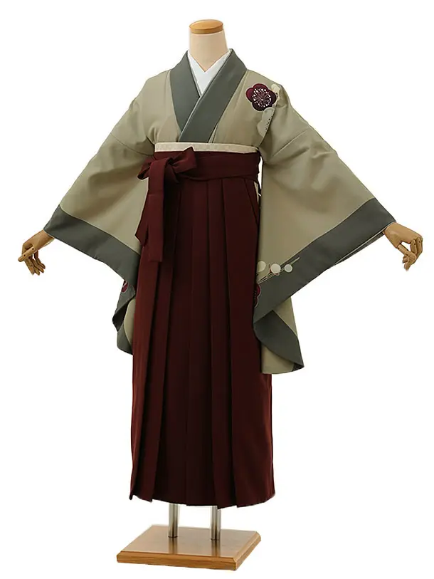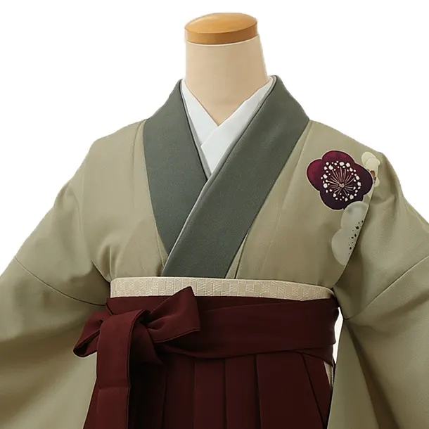 卒業式袴レンタル1369 ベージュ梅縦取りxボルドー