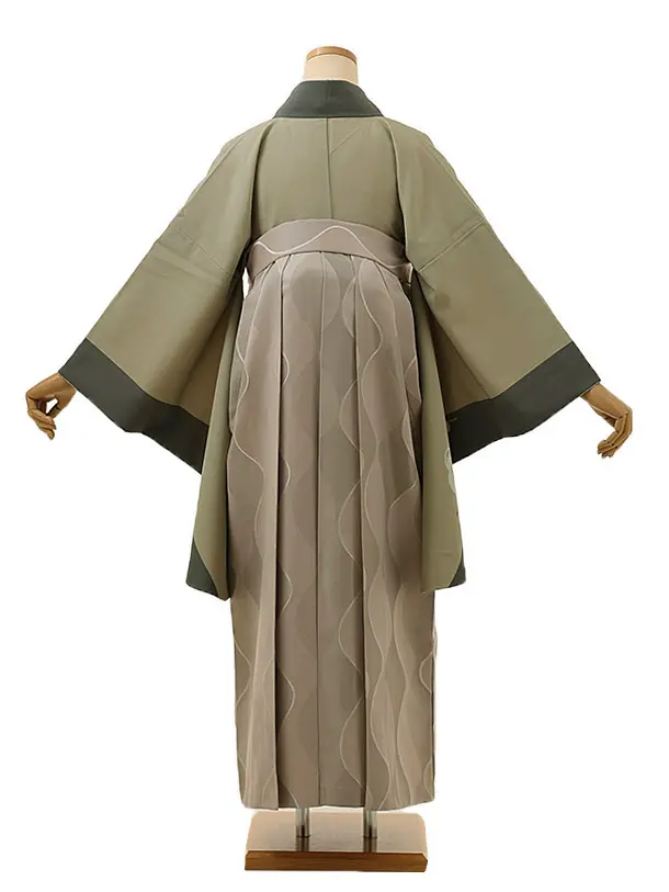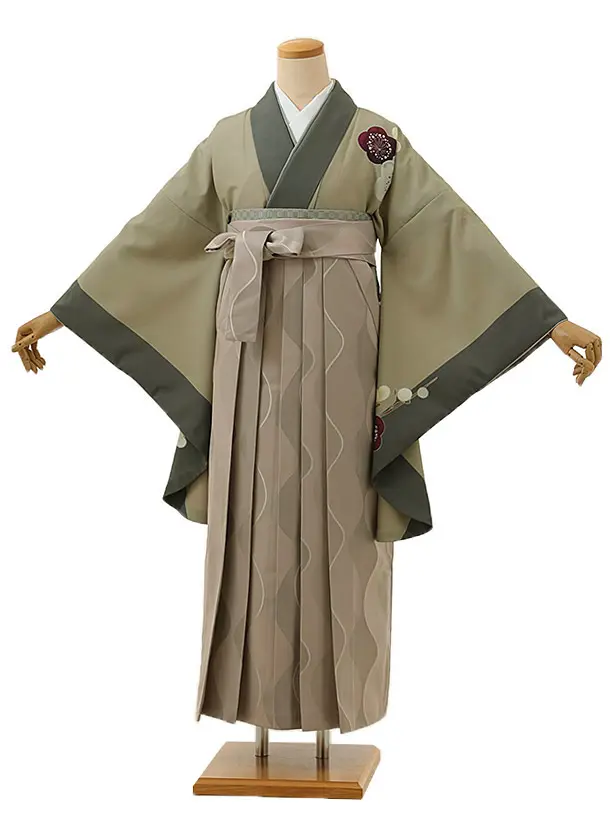 卒業式袴レンタル1370 ベージュ梅縦取りxピンクグレー