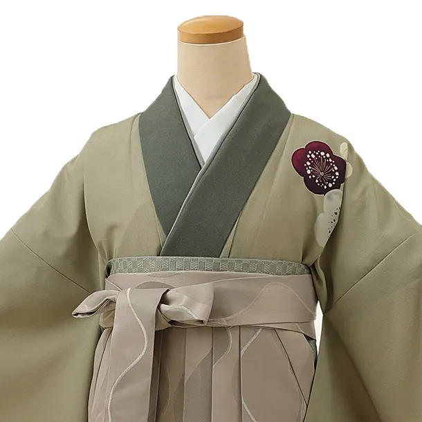 卒業式袴レンタル1371 ベージュ梅縦取りxピンクグレー