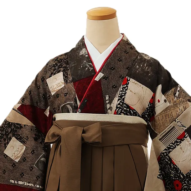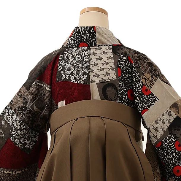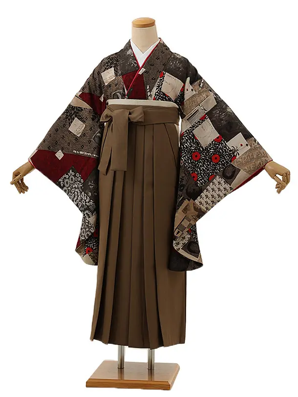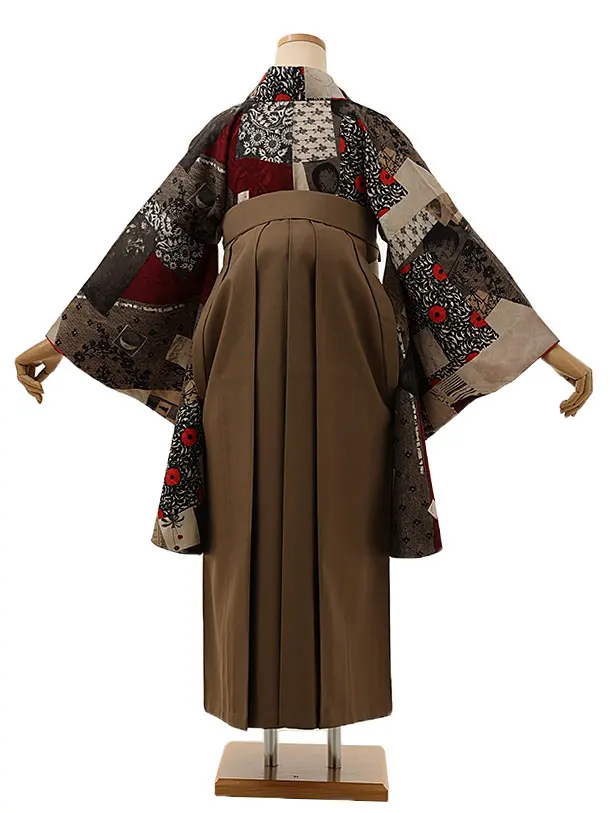 卒業式袴レンタル1380 赤ベージュタンポポxブラウン