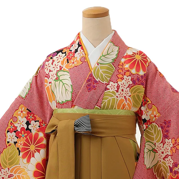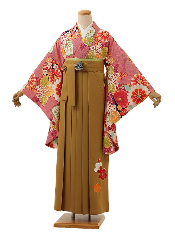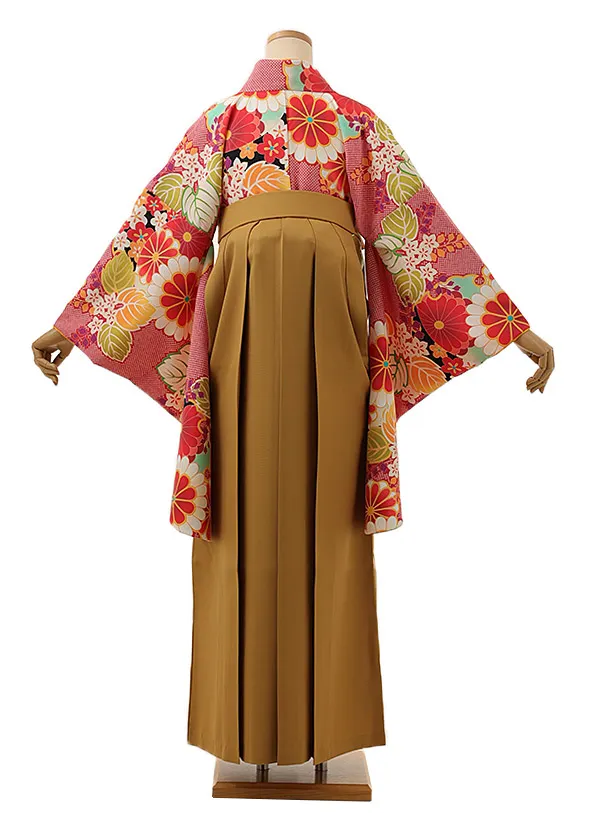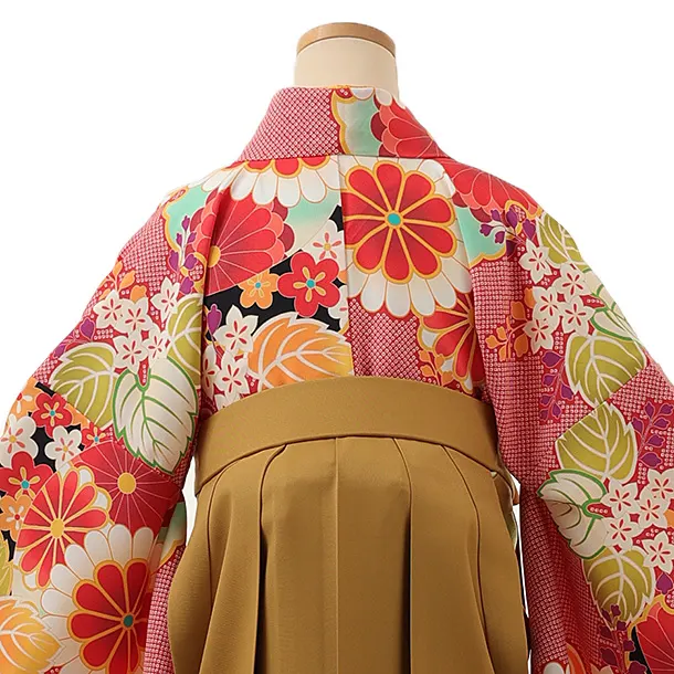 卒業式袴レンタル1387 赤疋田柄桐菊x金茶