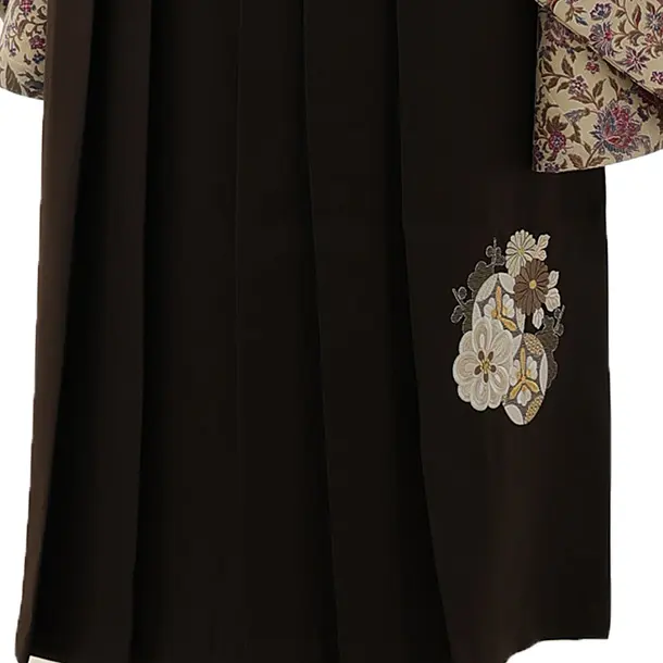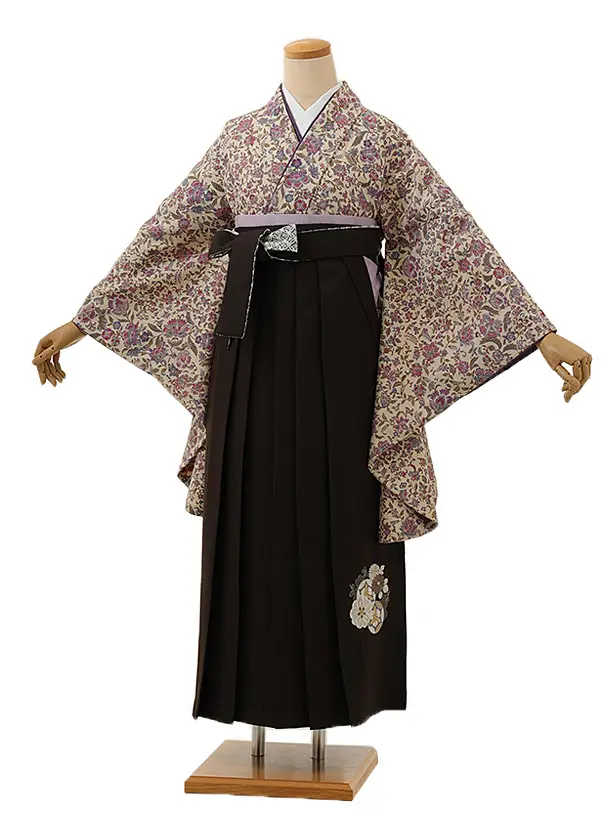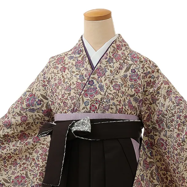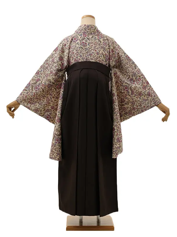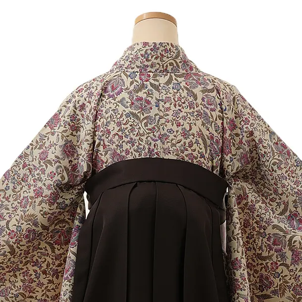 卒業式袴レンタル1389 アイボリー更紗xこげ茶