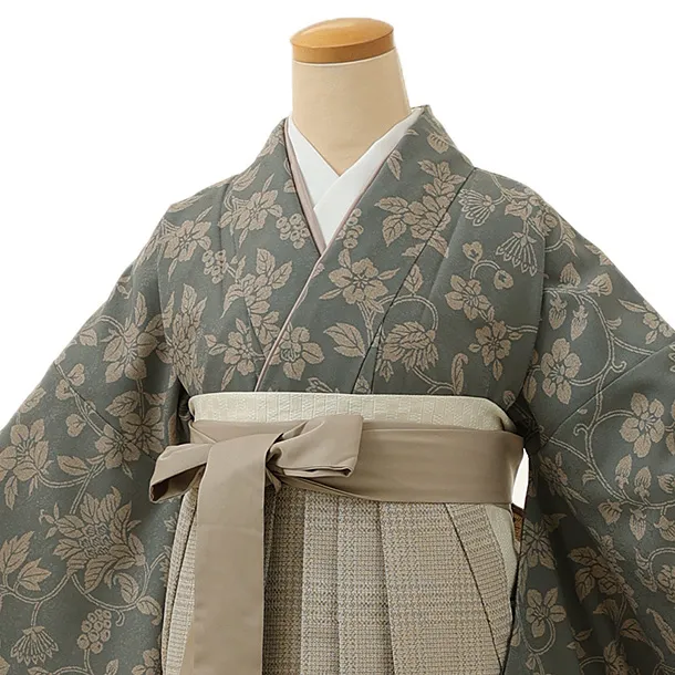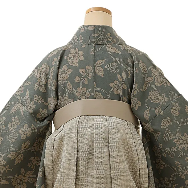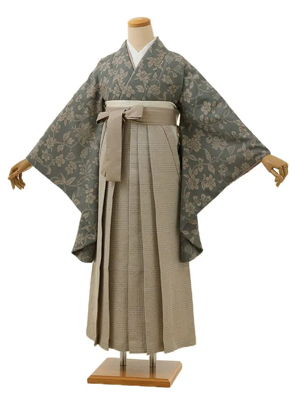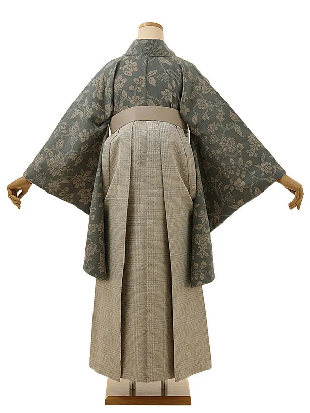 卒業式袴レンタル1390 ラフィネココグレーxベージュチェック