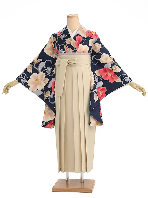 卒業式袴レンタル1392 紺花×ベージュ
