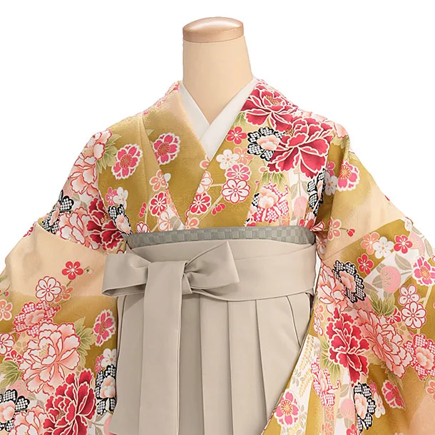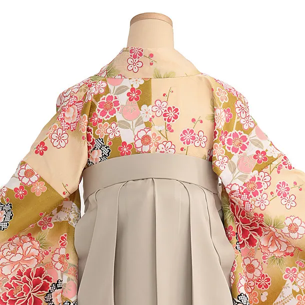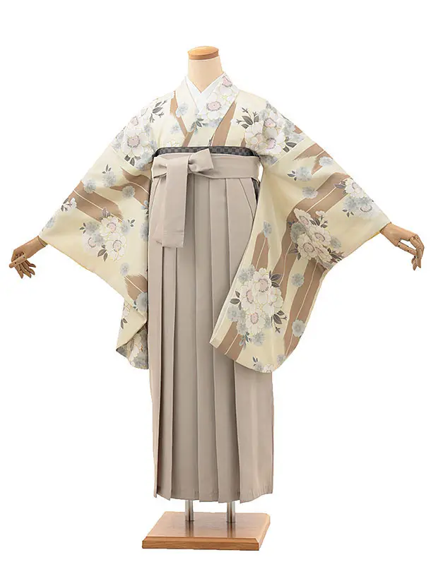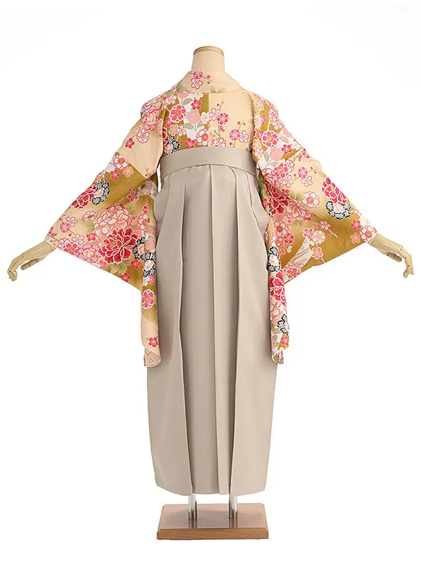 卒業式袴レンタル1399 ベージュ花×ベージュ