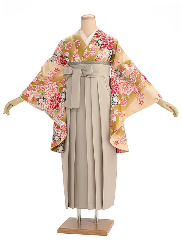 卒業式袴レンタル1400 ベージュ花×ベージュ
