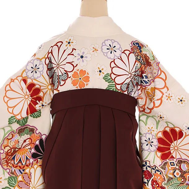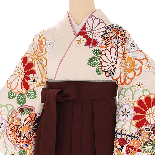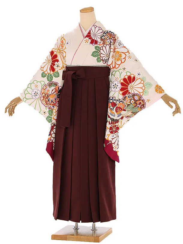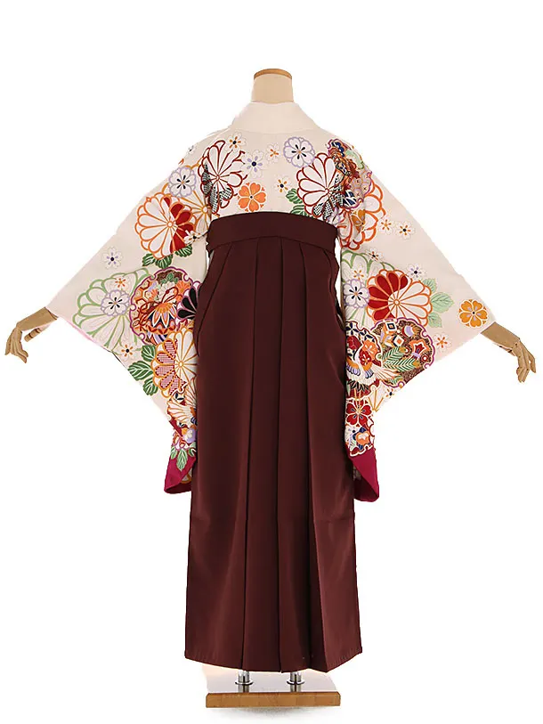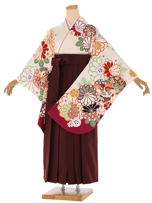 卒業式袴レンタル1404 クリーム菊×エンジ