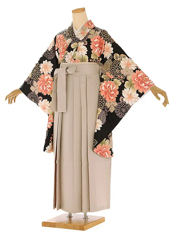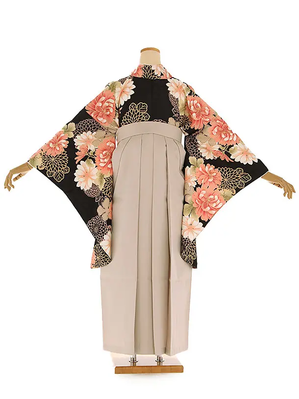卒業式袴レンタル1412 黒地に菊×ベージュ
