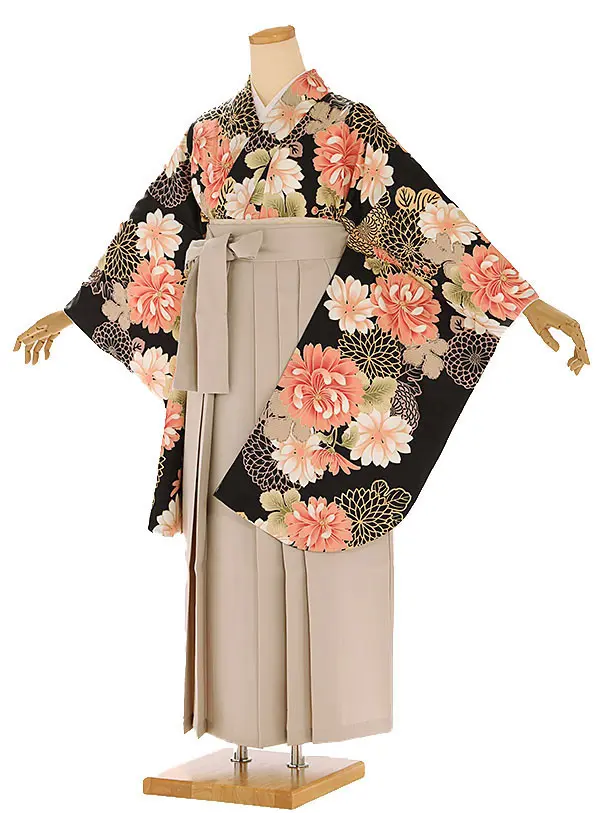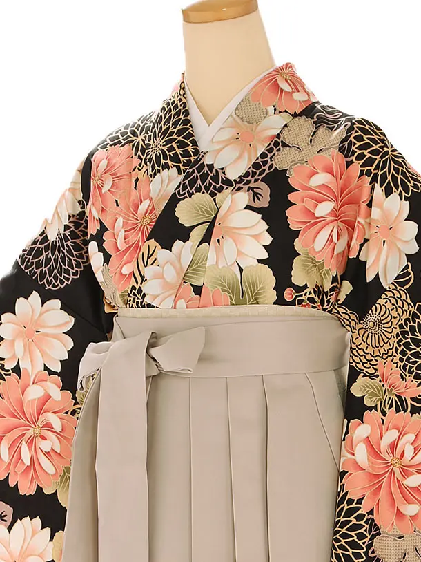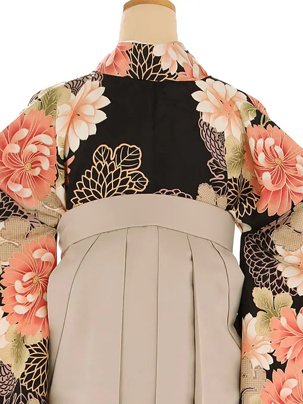 卒業式袴レンタル1413 黒地に菊×ベージュ