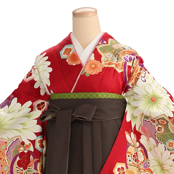 卒業式袴レンタル1417 赤花づくし×茶