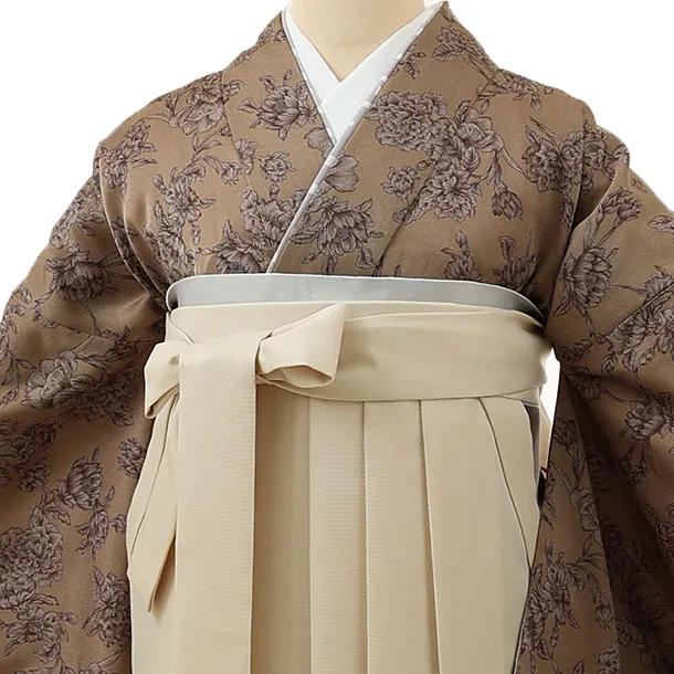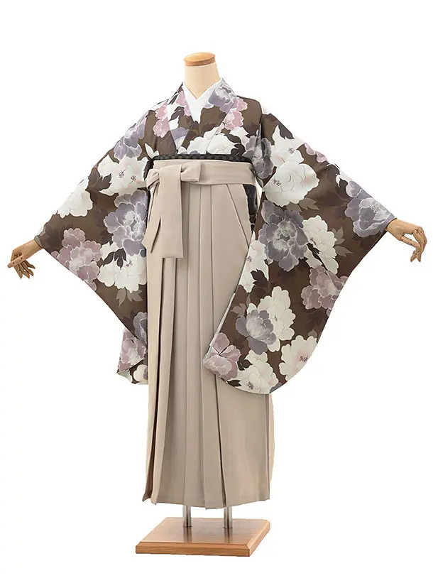 卒業袴レンタル1435モカブラウン花xアイボリー