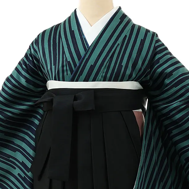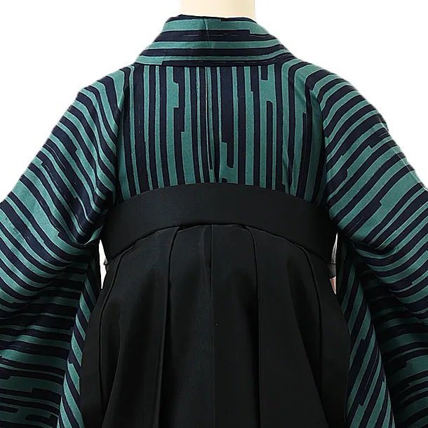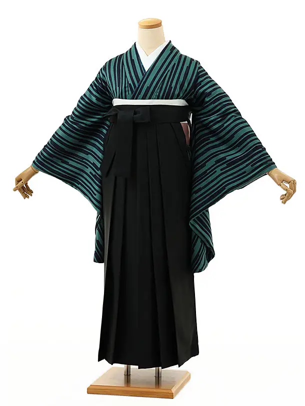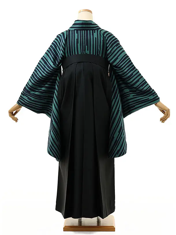 卒業式袴レンタル1439紺グリーンストライプx黒