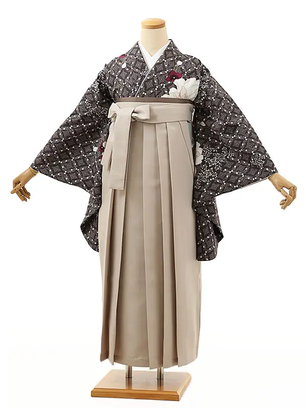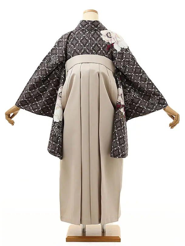 卒業式袴レンタル1442ブラウン洋花xベージュ