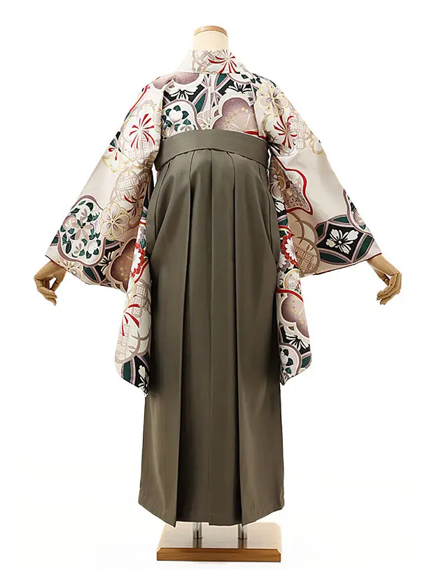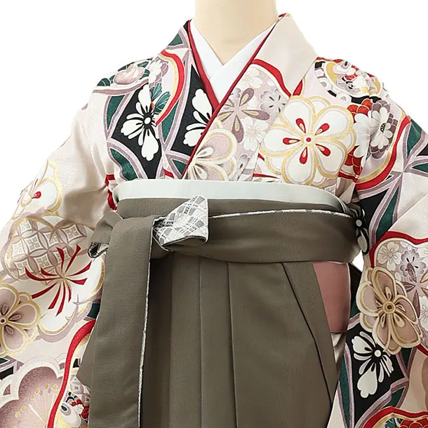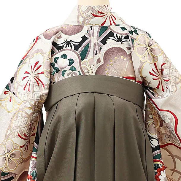 卒業式袴レンタル1448ベージュ梅xモスグリーン