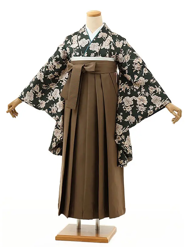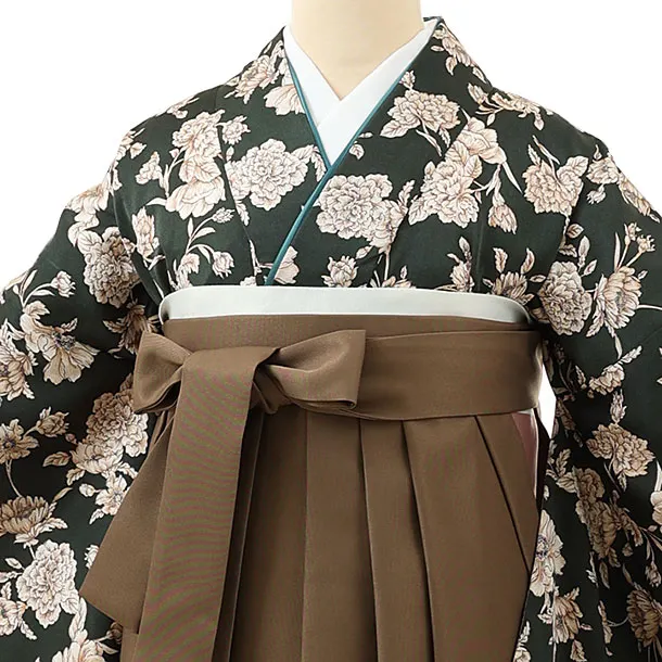 卒業式袴レンタル1450グリーン洋花xモカブラウン