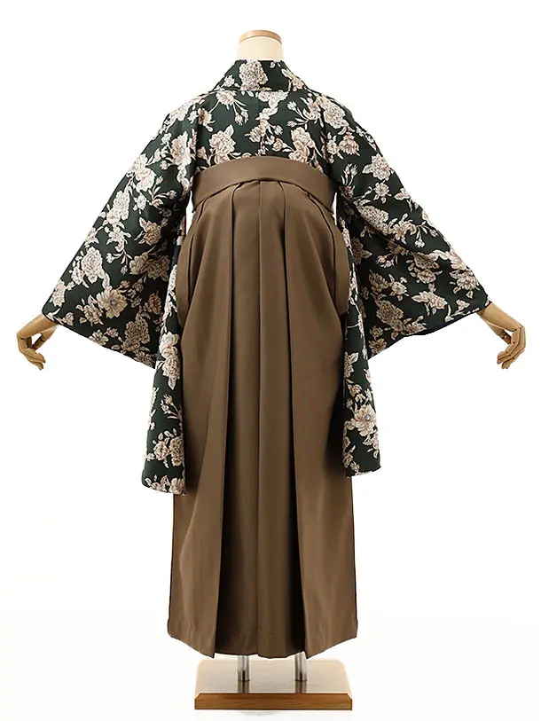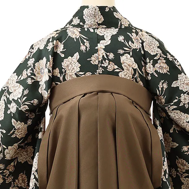 卒業式袴レンタル1452グリーン洋花xモカブラウン