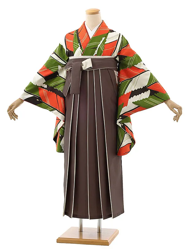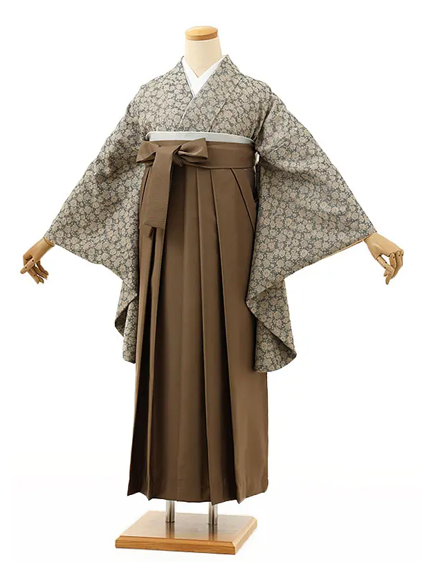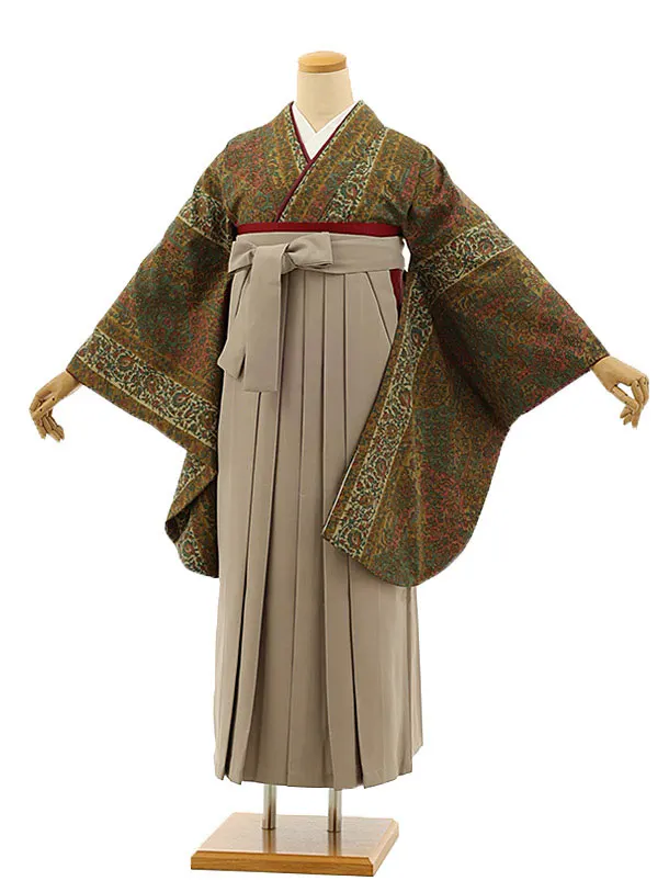 卒業式袴レンタル1477モスグリーン小花xモカブラウン