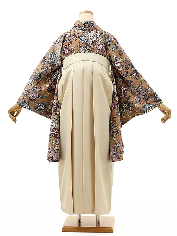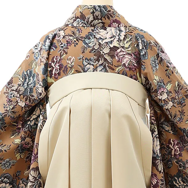 卒業式袴レンタル1482モカブラウンゴブラン柄xアイボリー