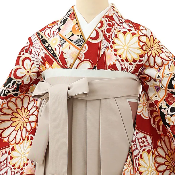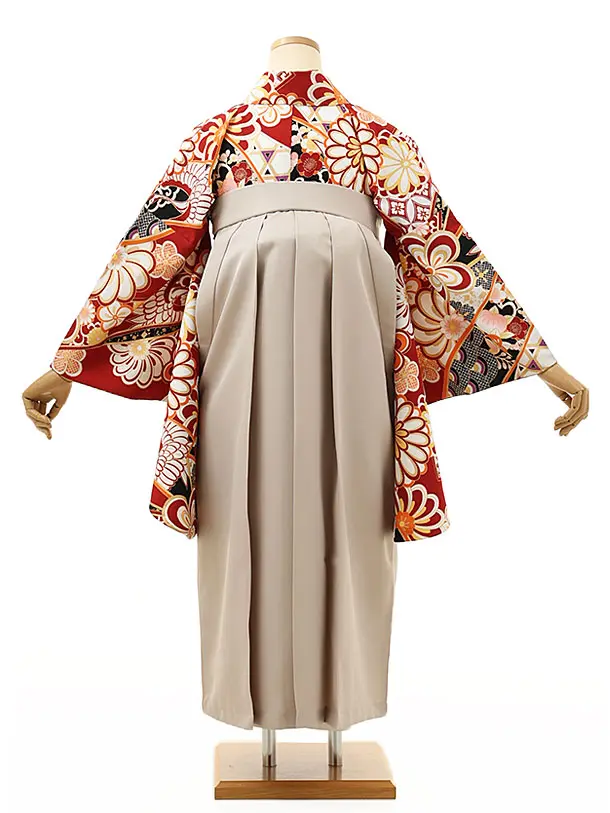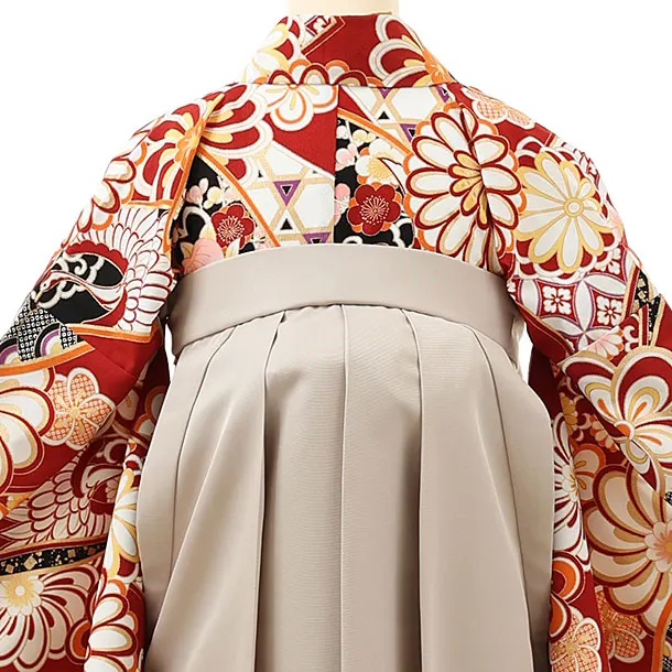 卒業式袴レンタル1485赤梅菊鶴xベージュ