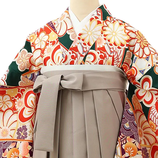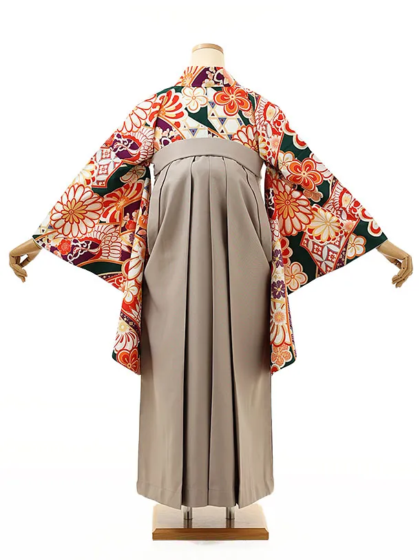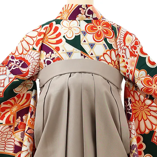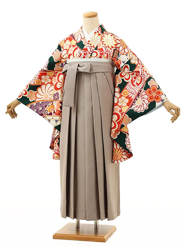 卒業式袴レンタル1487グリーン梅菊鶴xグレージュ
