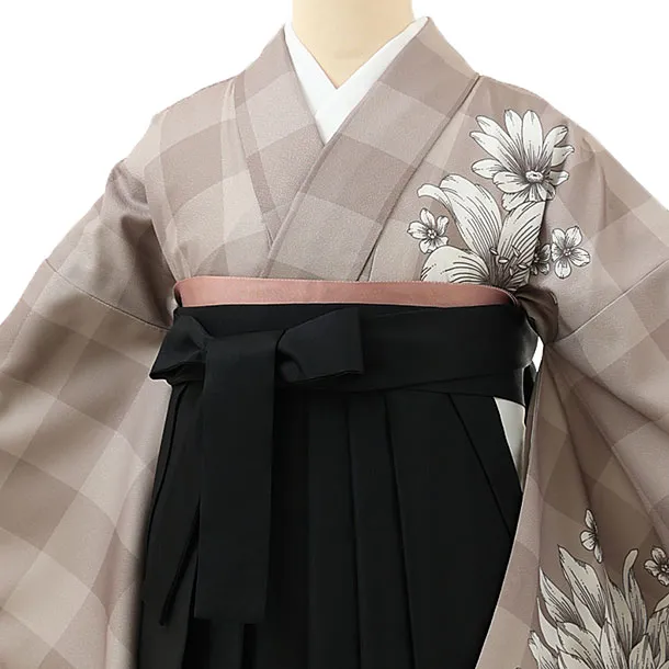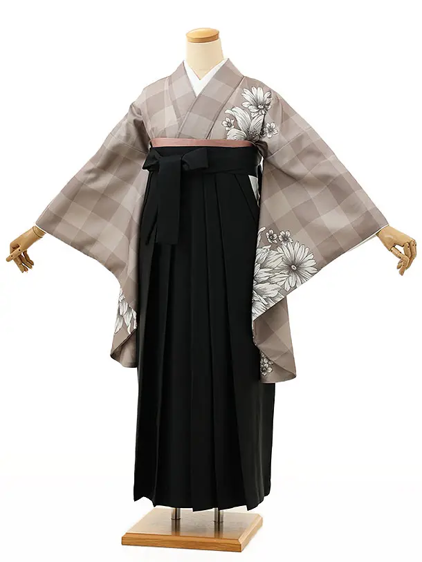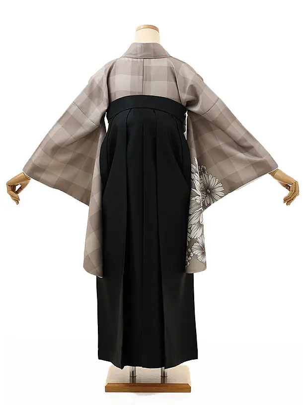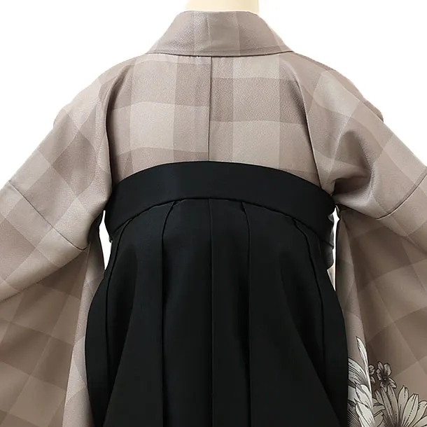 卒業式袴レンタル1488グレージュチェックダリアx黒