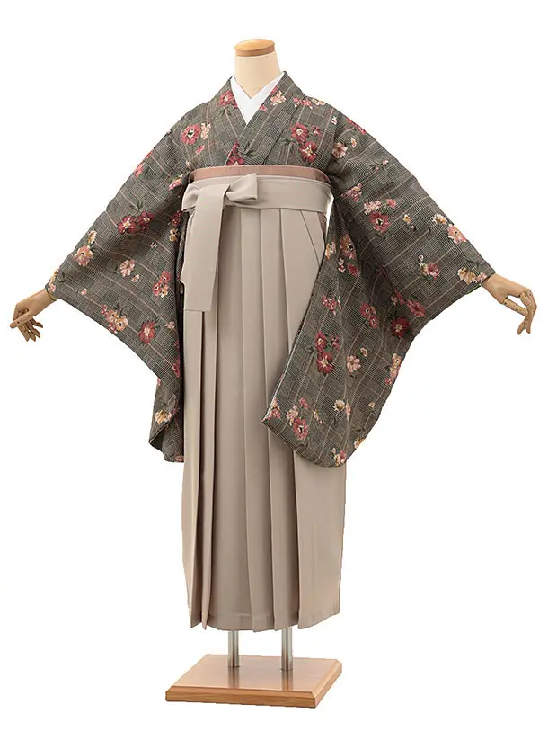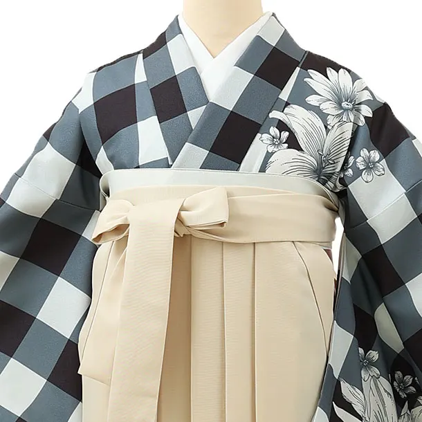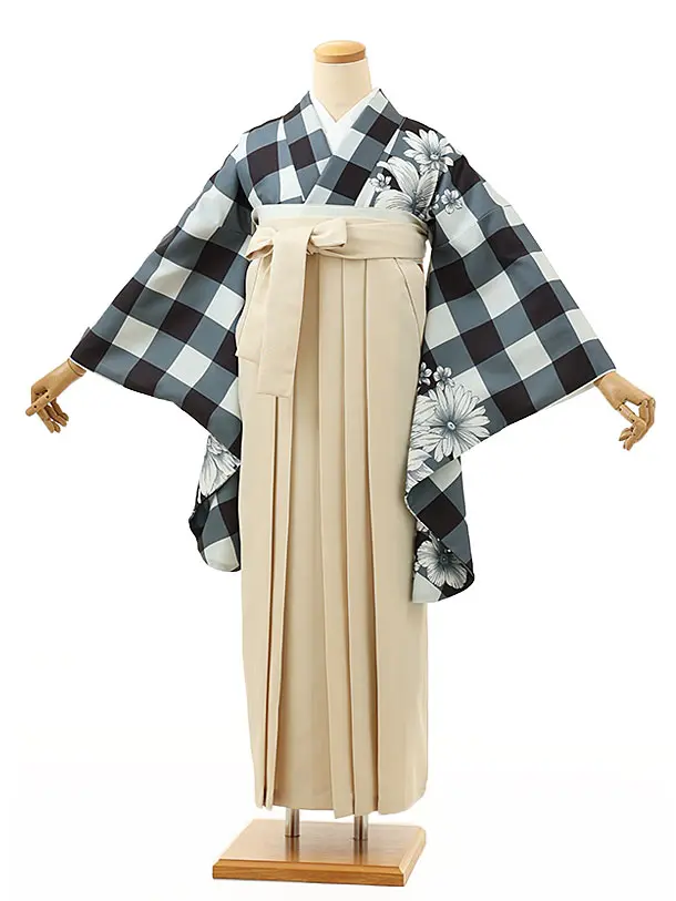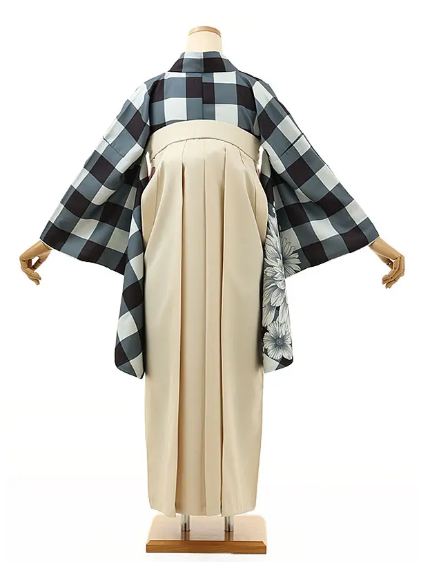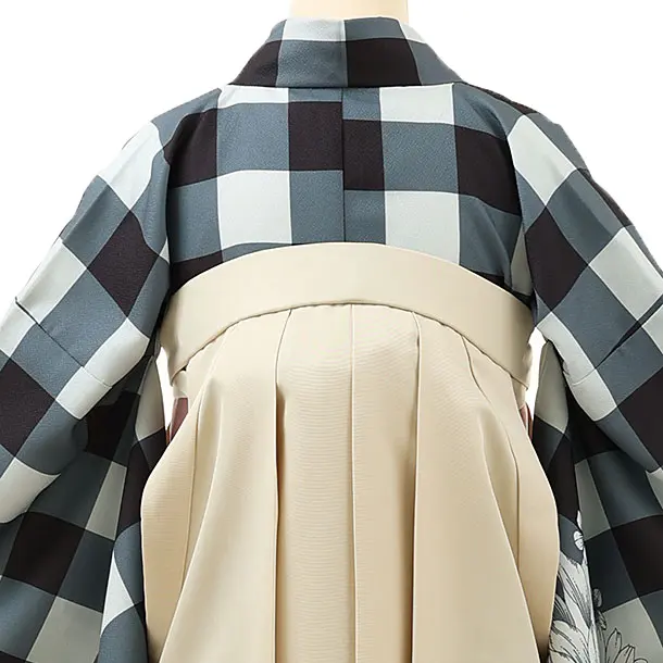 卒業式袴レンタル1489黒チェックダリアxアイボリー