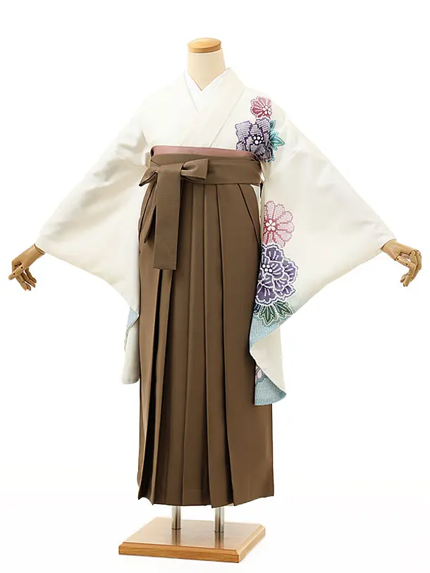 卒業式袴レンタル1490オフホワイト藤ぼたんxモカブラウン