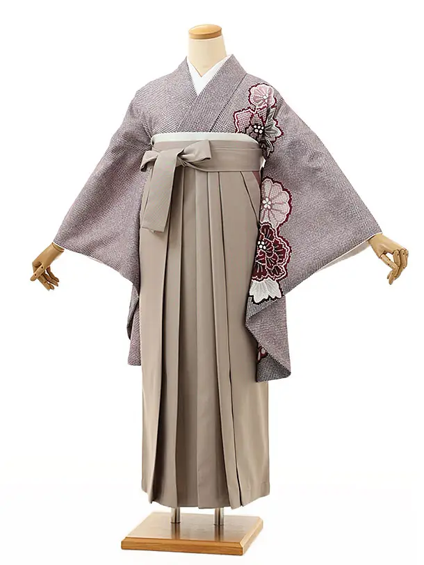 卒業式袴レンタル1493パープル疋田柄藤ぼたんxグレージュ