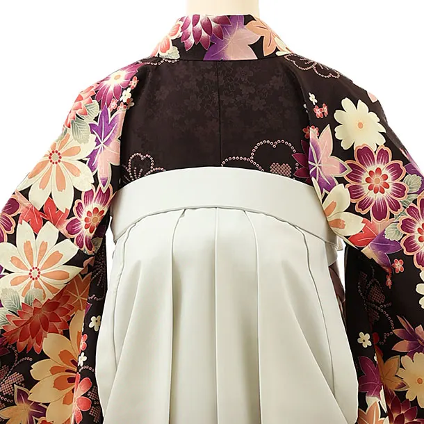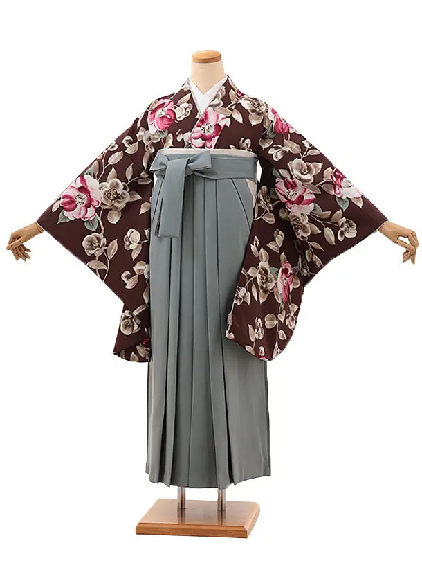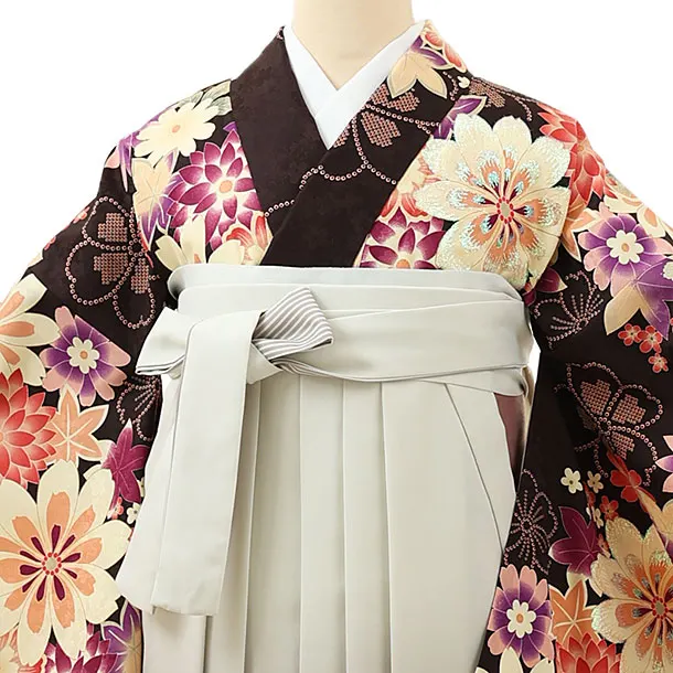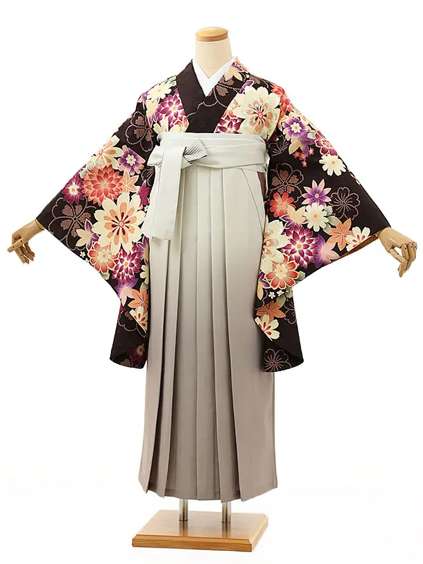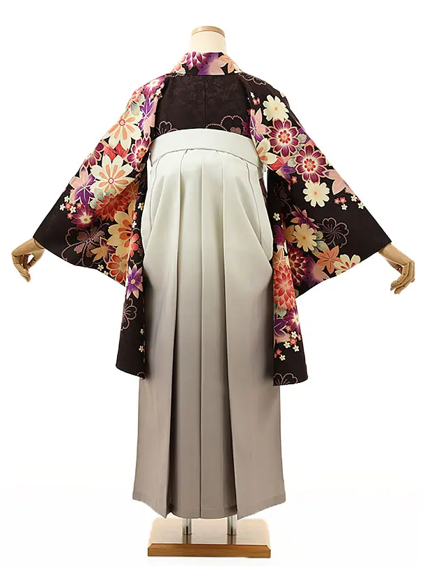 卒業式袴レンタル1502こげ茶花づくしxグレージュぼかし