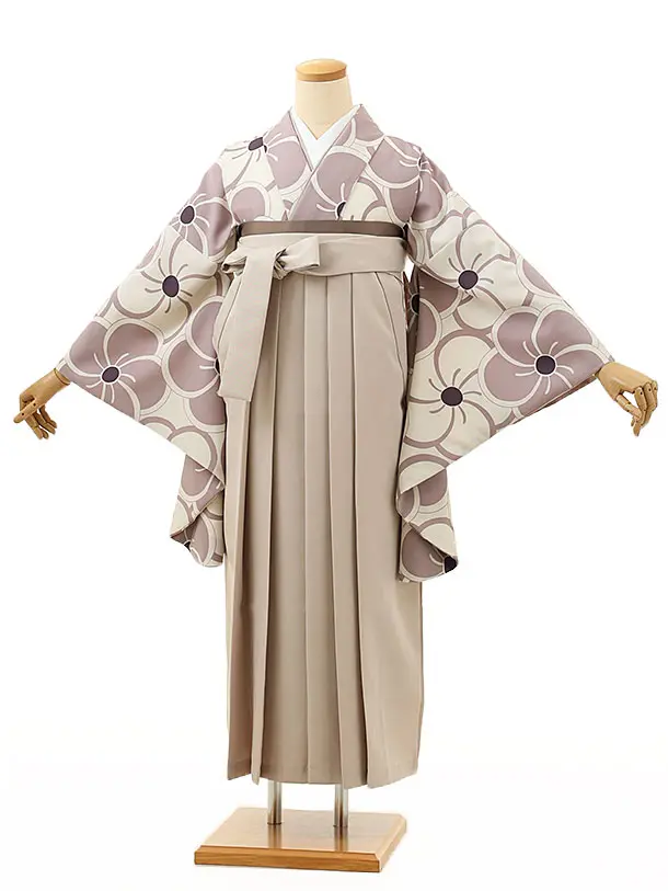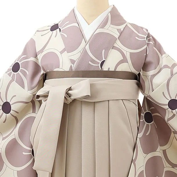 卒業式袴レンタル1507グレーパープルねじり梅xベージュ