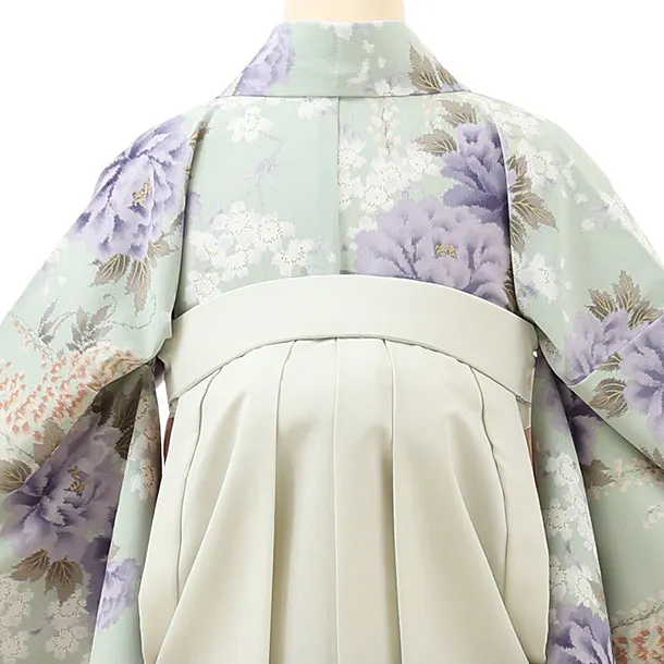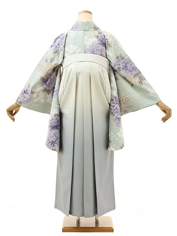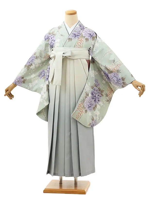 卒業式袴レンタル1511ミントグリーン牡丹藤xグレーぼかし