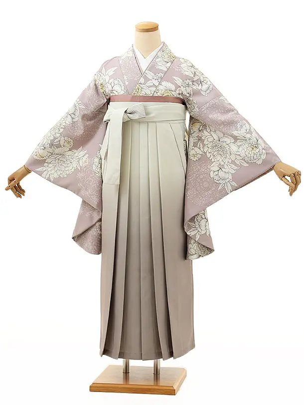 卒業式袴レンタル1521ラベンダー色花xグレージュぼかし