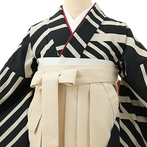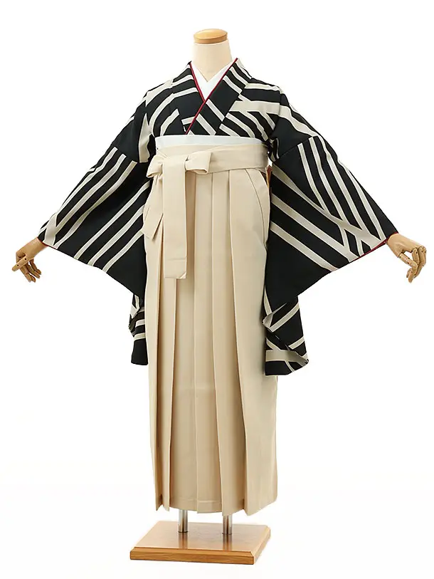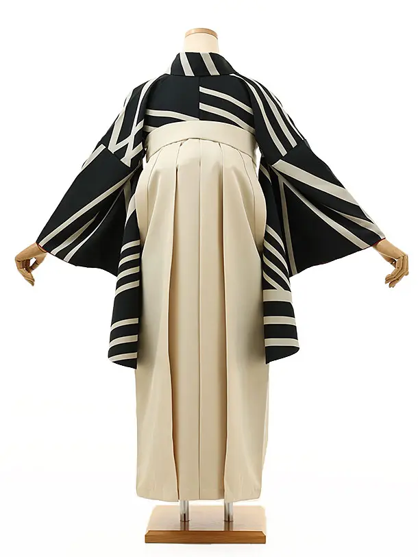 卒業式袴レンタル1527黒変わり縞xアイボリー