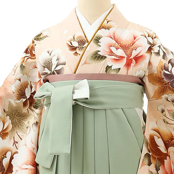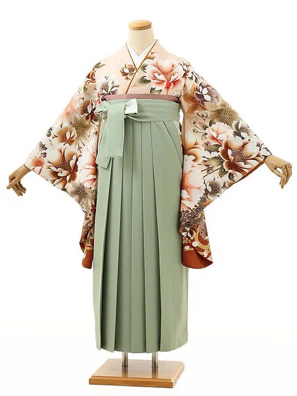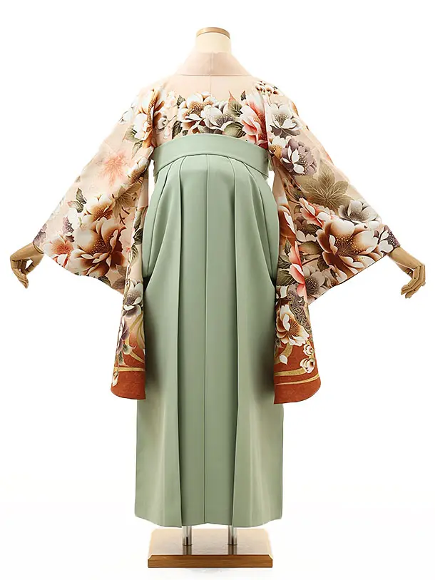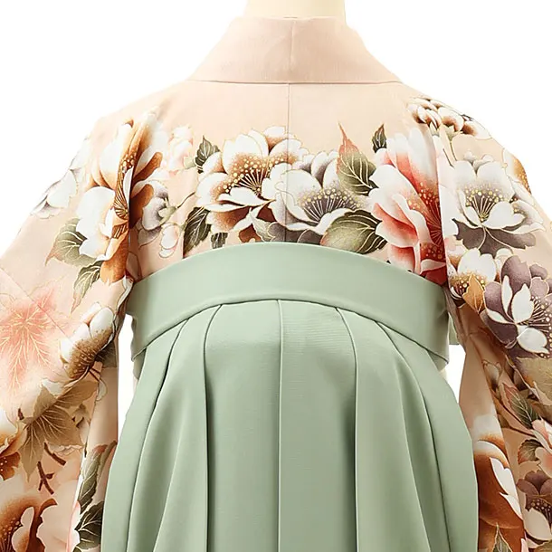 卒業式袴レンタル1545薄ピンクオレンジ花づくしxペールグリーン