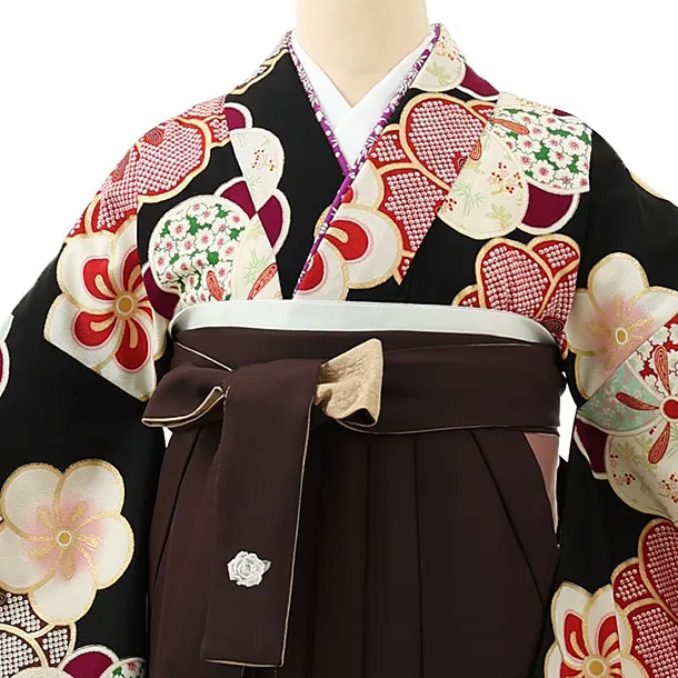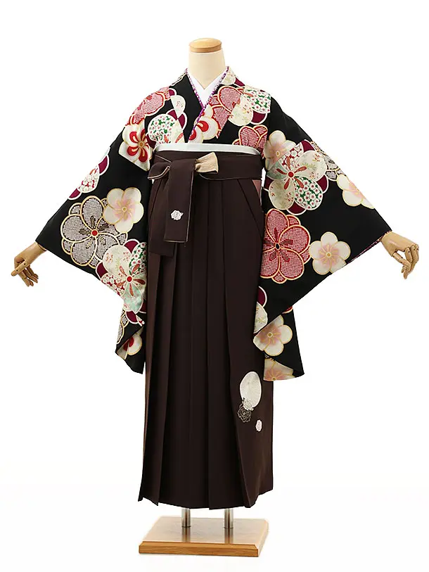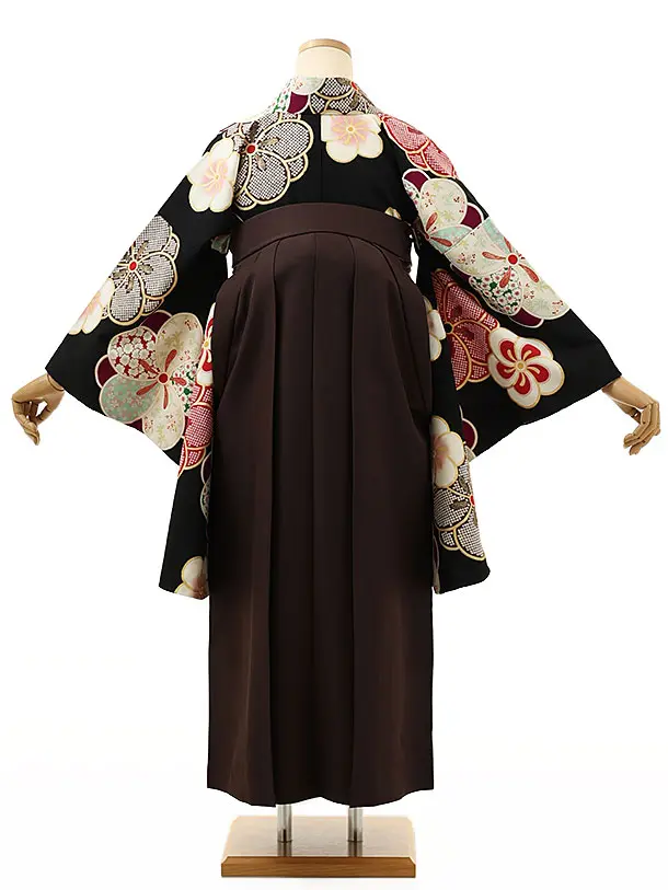 卒業式袴レンタル1547黒ねじり梅xブラウン