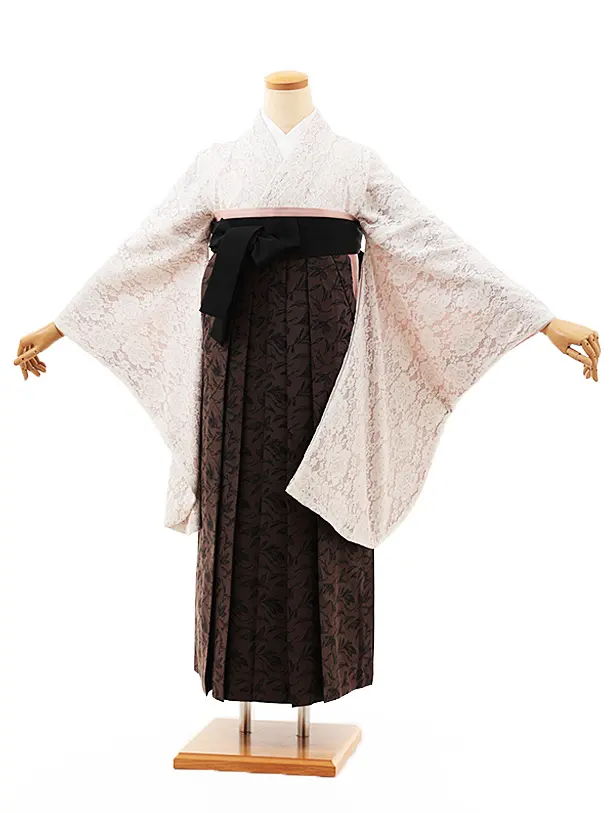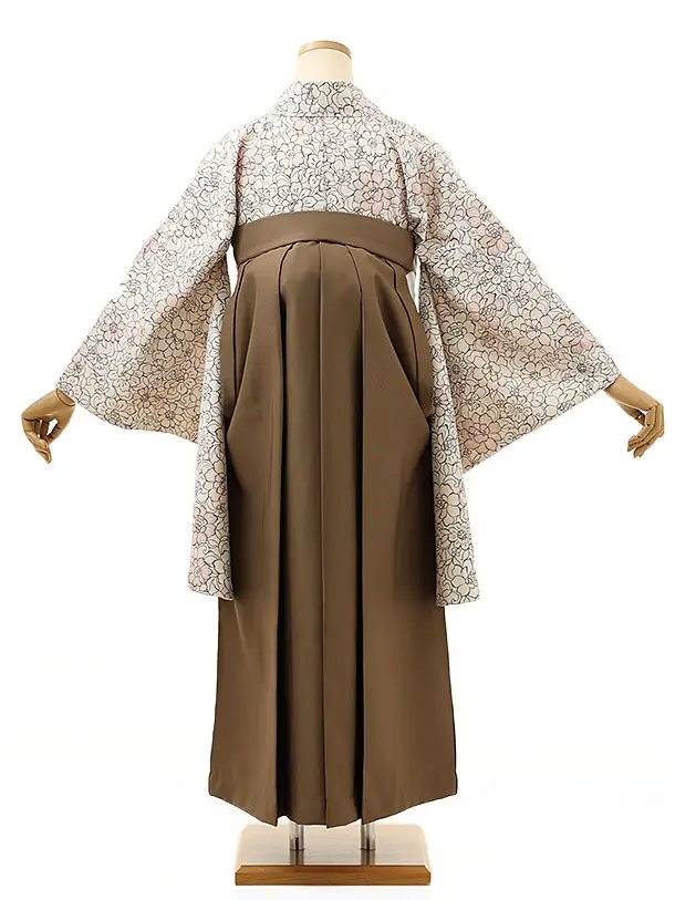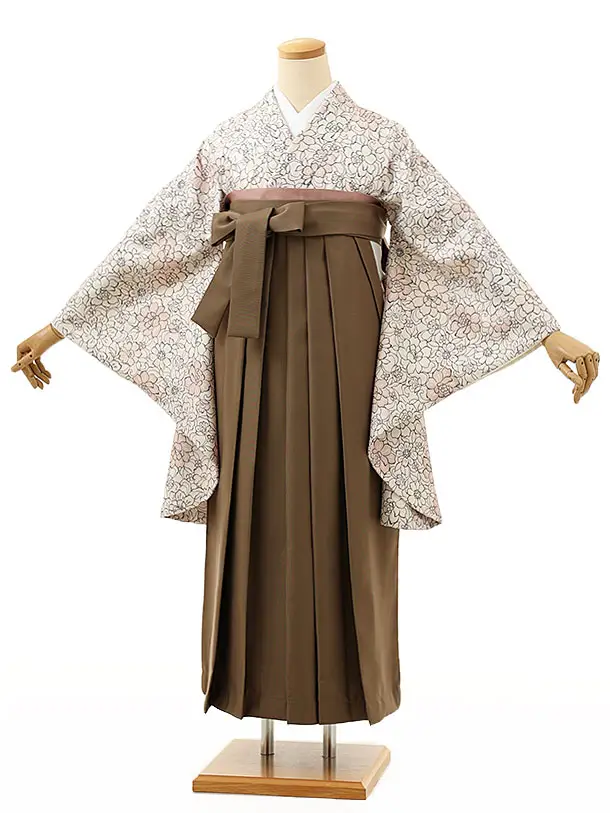 卒業式袴レンタル1550薄ピンク小花xモカブラウン