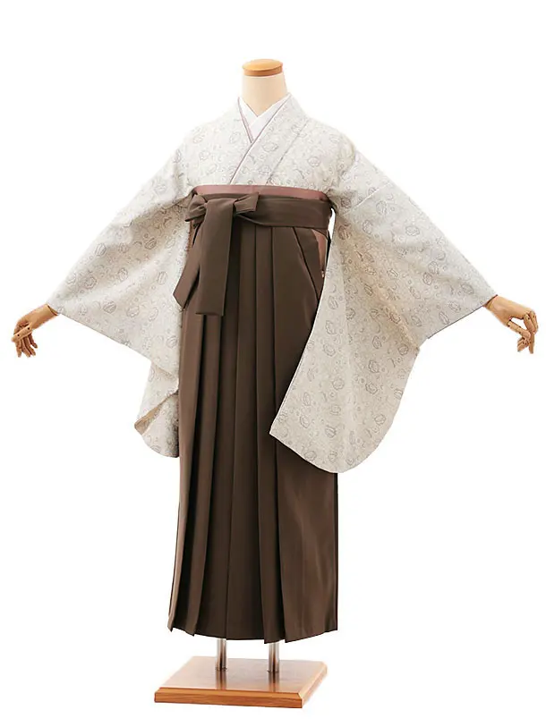 卒業式袴レンタル1554グレーピンストライプ椿xモカブラウン