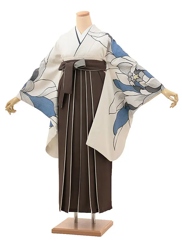卒業式袴レンタル1556白地熨斗に花xモカブラウン
