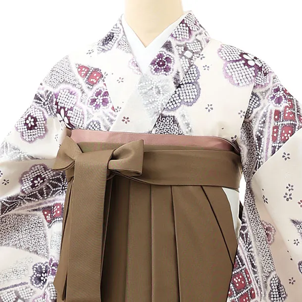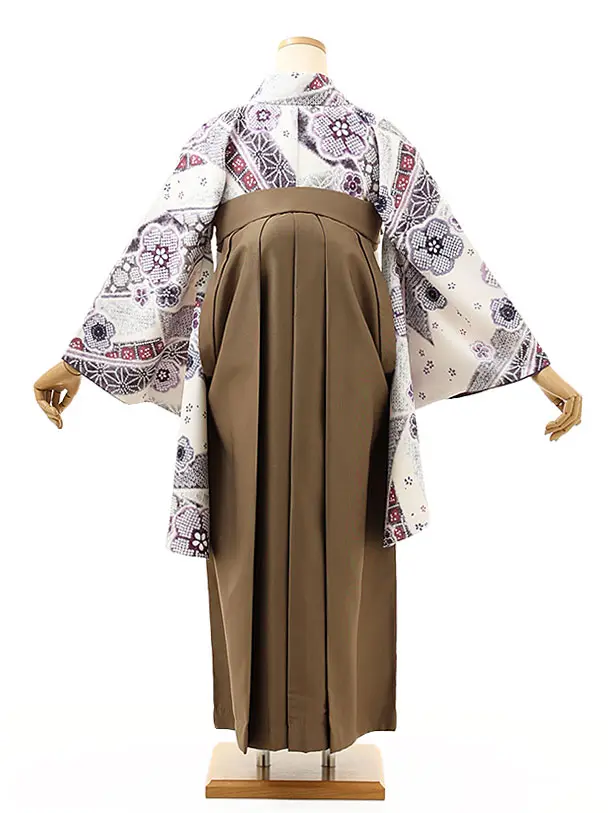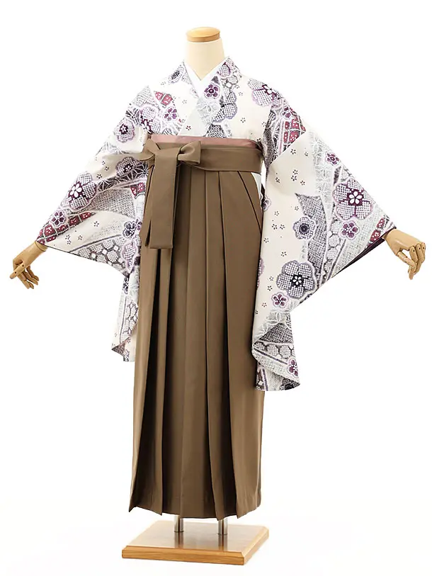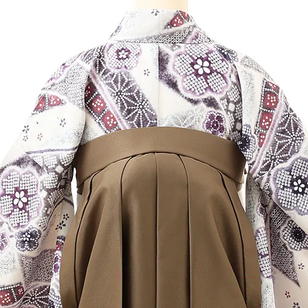 卒業式袴レンタル1557白地熨斗に花xモカブラウン