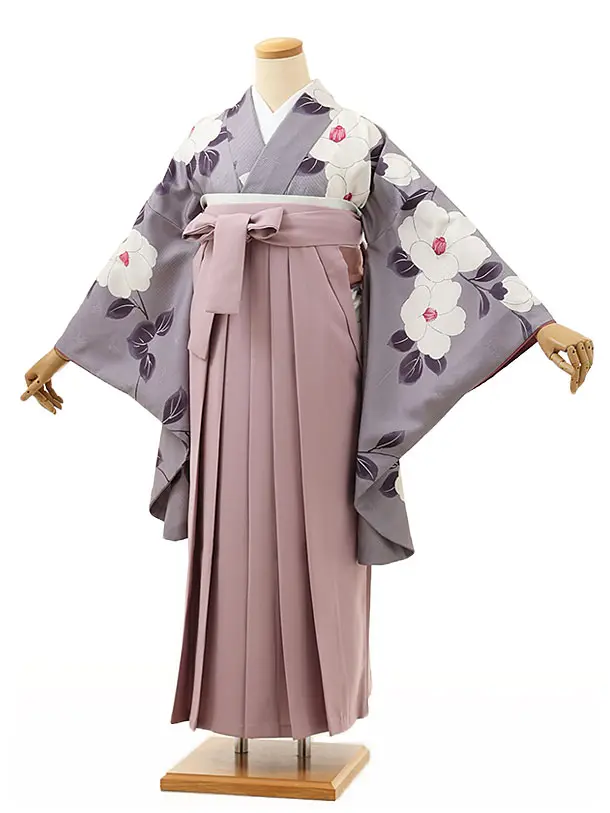 卒業式袴レンタル1561グレイッシュパープルピンストライプ椿xラベンダー