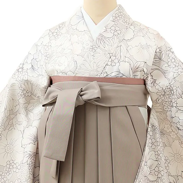 卒業式袴レンタル1566グレージュ花xグレージュ