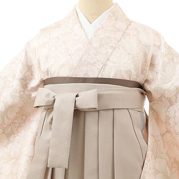 卒業式袴レンタル1568ベージュピンク花xベージュ