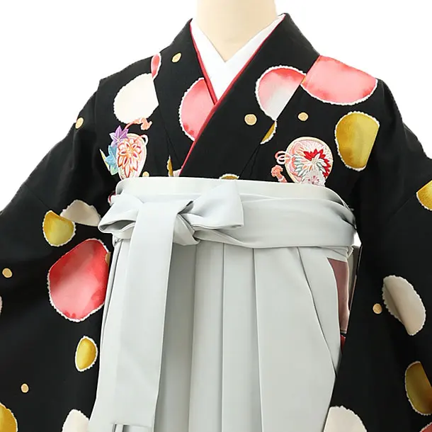 卒業式袴レンタル1569黒ドット刺繍鞠xグレー