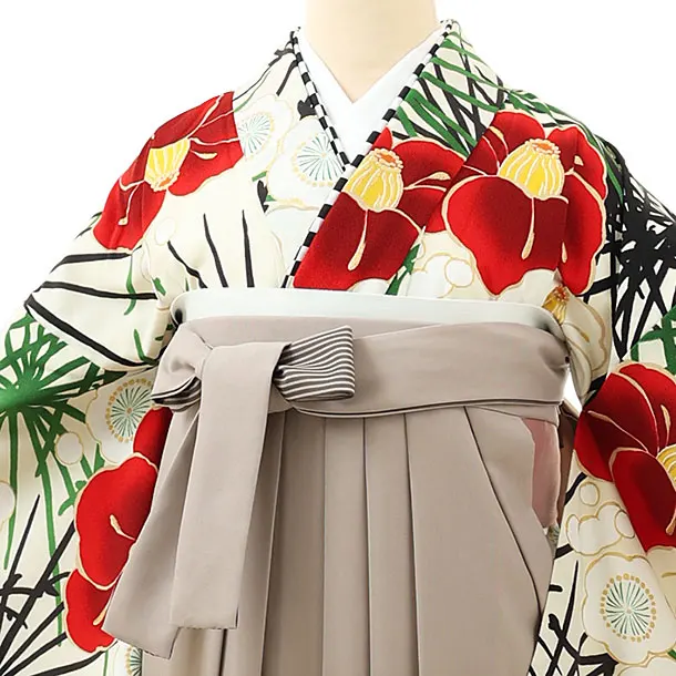 卒業式袴レンタル1574クリーム椿xグレージュぼかし